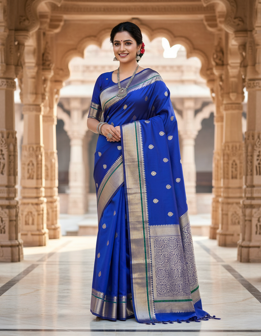 💙 Royal Blue Katan Soft Silk Saree – A Timeless Expression of Elegance
