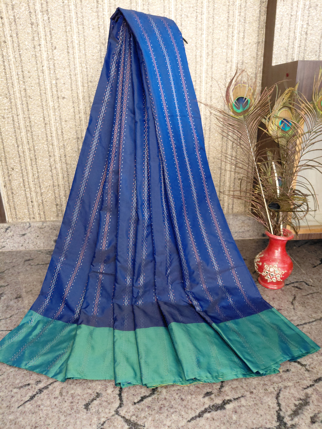 Elegant Royal Blue Arni Silk Saree with Emerald Green Border