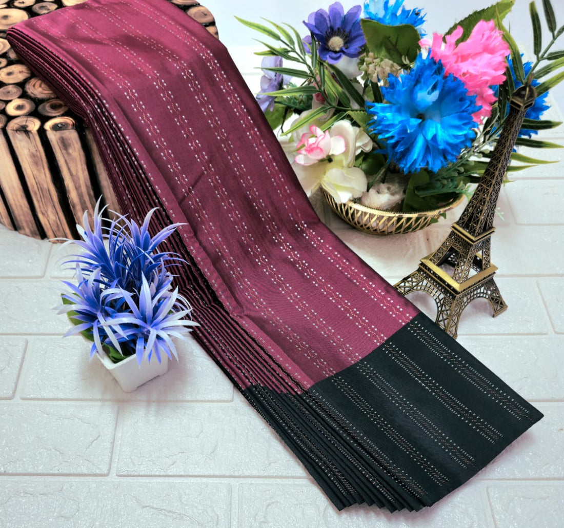 Drape yourself in timeless elegance with this exquisite Aarani silk saree, featuring a rich maroon...