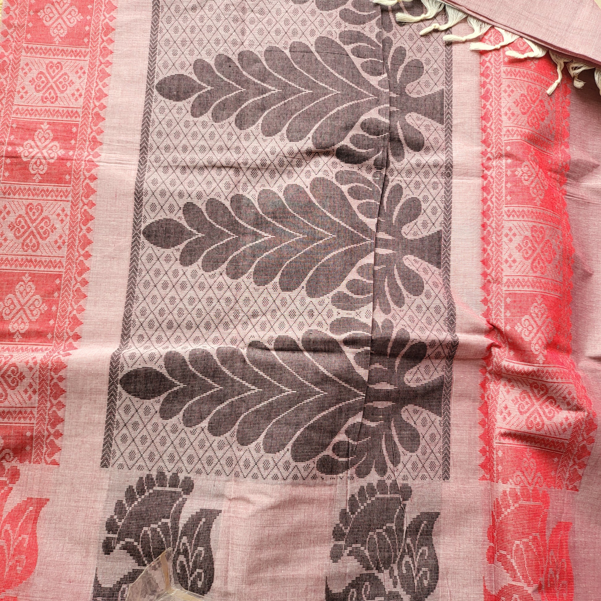 This 120 Count Handloom Cotton Saree in soothing pastel tones is the epitome of grace and comfort. Expertly handwoven, it features a soft texture and lightweight feel, ensuring an elegant drape for all-day wear. The subtle pastel shade adds a touch of freshness and sophistication, making it perfect for office, casual gatherings, or traditional occasions. A timeless saree that beautifully combines tradition with modern simplicity